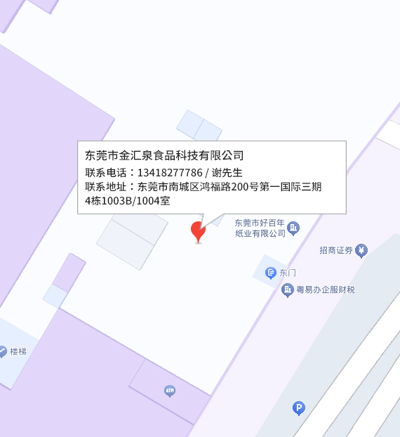 当您进入“联系我们”的页面时,您已成为我们最尊贵的客户,欢迎您来到东莞市金汇泉食品科技有限公司官网,我们竭诚为您服务!